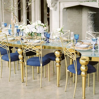 Tavolo da pranzo moderno in acciaio inossidabile dorato all'ingrosso per il matrimonio