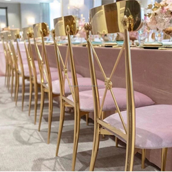 Sedie in acciaio inossidabile di colore dorato per banchetti di lusso
