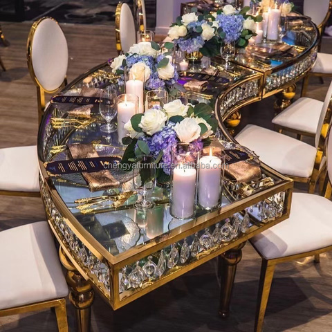 Lüks tasarımlar otel ziyafet olay düğün paslanmaz çelik düğün yemek masaları